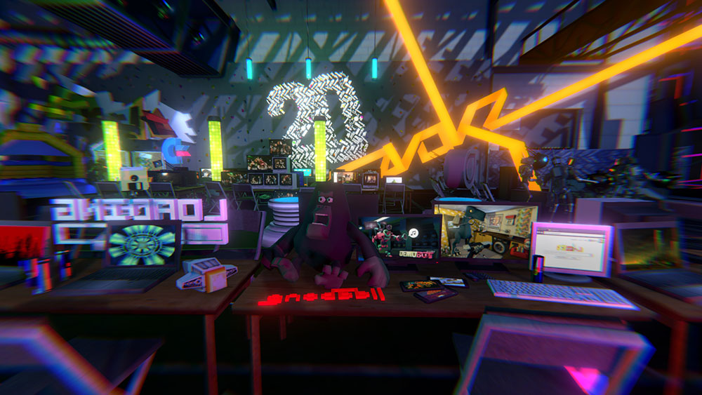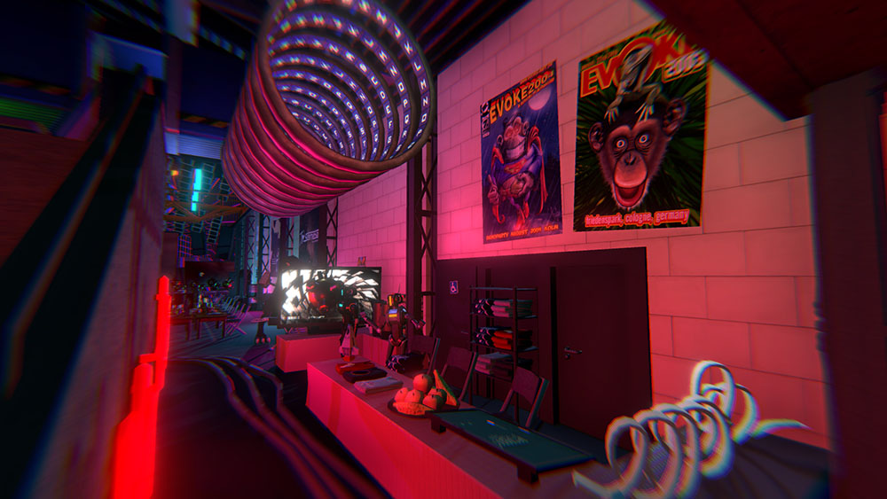 Unter meinem Scener Namen "gnodab2" habe ich für die "Interactive Competition 2017" (Wettbewerb im Bereich Interactive) den Veranstaltungsort in Unity nachgebaut und damit den ersten Platz belegt. Die Einrichtung ist angelehnt an einigen bekannten Demos und Elementen aus der Demoszene. Wer die Evoke ausserhalb des Veranstaltungszeitraumes besuchen möchte kann sich das Programm (Windows/.EXE) herunterladen.